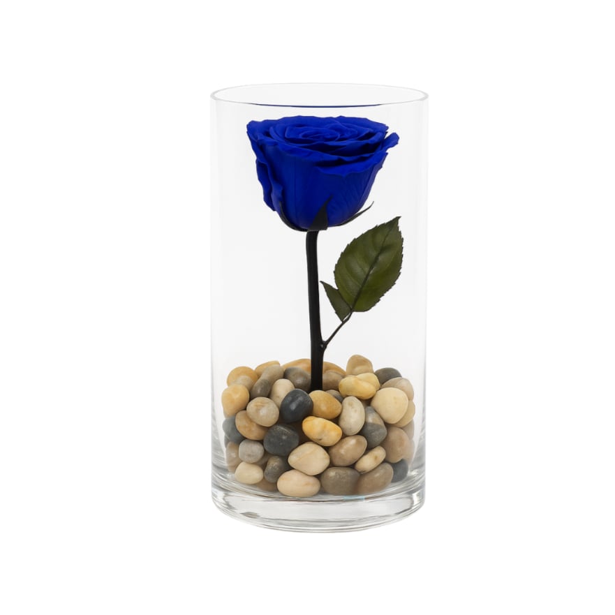 فازة قصيرة تحتوي على وردة واحدة دائمة يمكنك اقتنائها أو منحها كهدية لمن تحب